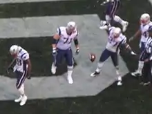 Gostkowski and Welker were also voted to the 2008 All-Pro First Team and Second Team, respectively.[71] Gostkowski received 28 of 50 votes at kicker, while Welker received 6 votes at wide receiver; three other Patriots—guard Logan Mankins, wide receiver Randy Moss, and rookie inside linebacker Jerod Mayo—also received votes.[72]