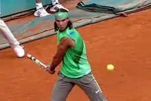 ![]() Rafael Nadal at the 2008 French Open. | |