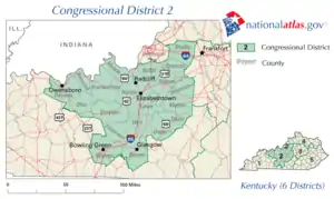 This district is in Western-central Kentucky. Republican state senator Brett Guthrie won against Democratic state senator David Boswell. CQ Politics forecasted the race as 'Leans Republican'.