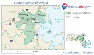 Massachusetts's 8th congressional district lies in the eastern part of the state, including part of Boston and the immediately adjacent cities of Cambridge, Somerville, and Chelsea. It has been represented by Democrat Mike Capuano since 1999. CQ Politics forecasted the race as 'Safe Democrat'.