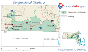 Massachusetts's 2nd congressional district lies in the south-central part of the state. It has been represented by Democrat Richard Neal since 1989. CQ Politics forecasted the race as 'Safe Democrat'.