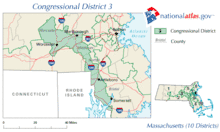 Massachusetts's 3rd congressional district lies in the central and southeastern part of the state. It has been represented by Democrat Jim McGovern since 1997. CQ Politics forecasted the race as 'Safe Democrat'.