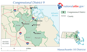 Massachusetts's 9th congressional district lies in the eastern part of the state, including part of Boston and some of its southern suburbs. It has been represented by Democrat Stephen Lynch since October 2001. CQ Politics forecasted the race as 'Safe Democrat'.