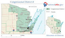 Wisconsin has eight seats in the House, apportioned according to the 2000 United States Census. Its 2007-2008 congressional delegation consisted of five Democrats and three Republicans. That remained unchanged after the 2008 congressional elections in Wisconsin as all incumbent candidate won re-election, although CQ Politics had forecasted Wisconsin's 8 district to be at some risk for the incumbent party.[1] As of 2021, this is the last time that Democrats won a majority of congressional districts from Wisconsin.