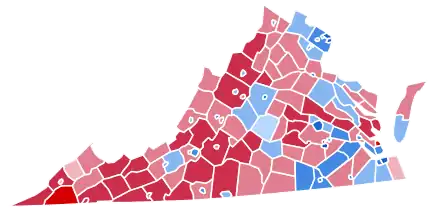 In contrast to Obama, McCain did well throughout rural Virginia.[25] He won the vast majority of its counties. In the part of Virginia protruding out west, Obama ran roughly even with Kerry, even though he comfortably won the election and Kerry lost. This area, save for one county and a few small towns, uniformly supported McCain. In addition, a number of unionized, Appalachian counties located next to Kentucky voted Republican; they had cast strong ballots for Bill Clinton. This was not surprising as this part of Virginia is a part of Appalachia, a region in which Obama consistently struggled during the course of the Democratic primary.