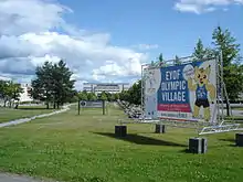 EYOF olympic village at Tampere University of Technology Campus in 2009. The mascot can be seen on the billboard.