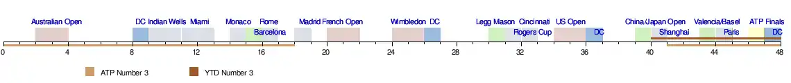 (W) Won; (F) finalist; (SF) semifinalist; (QF) quarterfinalist; (#R) rounds 4, 3, 2, 1; (RR) round-robin stage; (Q#) qualification round; (A) absent; (P) postponed; (Z#) Davis/Fed Cup Zonal Group (with number indication) or (PO) play-off; (G) gold, (F-S) silver or (SF-B) bronze Olympic medal; a (NMS) downgraded Masters Series/1000 tournament; (NH) not held. SR=strike rate (events won/competed)