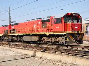 - The first of fifty Class 39-200 Electro-Motive Diesel type GT26CU-3 diesel-electric locomotives, built at the Transnet Rail Engineering shops in Koedoespoort.[20][21]