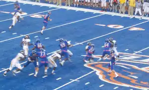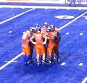 The 2010 Boise State Broncos football team represented Boise State University in the 2010 NCAA Division I FBS football season. The Broncos were led by fifth-year head coach Chris Petersen and played their home games at Bronco Stadium. They entered the 2010 season with winning streaks of 14 games overall and 25 games in regular-season play. This was the Broncos' final season as a member of the Western Athletic Conference, as the school announced on June 11, 2010, that it would leave the WAC for the Mountain West Conference effective July 1, 2011.[1]