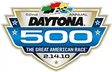 The 2010 Daytona 500 was the 1st of the 36 stock car races in the 2010 NASCAR Sprint Cup Series,[2] and the 52nd edition of the event.[5] It was held on February 14, 2010, in Daytona Beach, Florida, at Daytona International Speedway,[2] The layout used for the Daytona 500 is a four-turn, 2.5-mile (4.0 km) superspeedway.[6][7] Daytona's turns are banked at 31 degrees, and the front stretch—the location of the finish line—is banked at 18 degrees.[6]