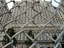 Several properties sustained damage to its exteriors. Toronto Police Headquarters was damaged and four Toronto Police Service cruisers were set ablaze in different locations.[45] Media vehicles of the Canadian Broadcasting Corporation and CTV Television Network were also damaged.[46] American corporations, such as Starbucks, appeared to be the targets of vandalism.[42] Other retail and corporate establishments targeted were Nike, Foot Locker, Sears, McDonald's, Tim Hortons, Urban Outfitters, Pizza Pizza, Subway, Swiss Chalet, Scotiabank, Canadian Imperial Bank of Commerce (CIBC), and TD Bank.[42][47][48][49] Mannequins from an American Apparel store were stolen and used to damage other stores.[42] Several shopping centres hospitals and hotels, including the Toronto Eaton Centre, Sheraton Centre, Chelsea Hotel,[50] Mount Sinai Hospital, Toronto General Hospital, Princess Margaret Hospital, and The Hospital for Sick Children were kept under lockdown.[51] The escalating violence caused Dutch violinist André Rieu to cancel his concert at the Air Canada Centre at the last minute.[52]