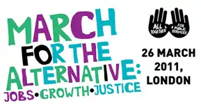 - "Jobs, Growth, Justice | 26 March 2011: March and rally against the cuts". March For the Alternative. 26 March 2011. Retrieved 1 September 2011.