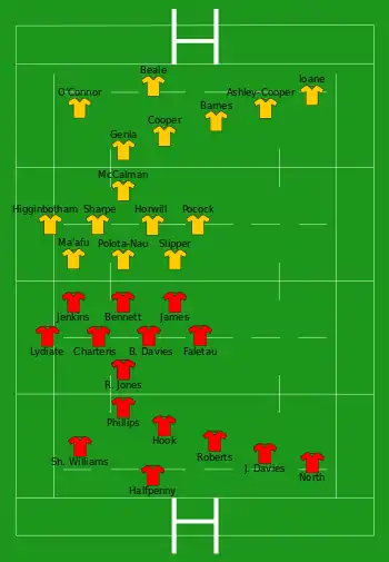 Report[1] | Try: Williams 3' c Phillips 51' m J. Davies 64' c Con: Priestland (2/3) Pen: Halfpenny (1/1) 29' |