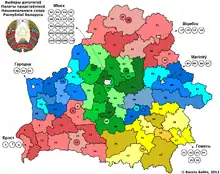 The elections were contested by the Communist Party, the Liberal Democratic Party, the United Left Party "A Just World", the Belarusian Social Democratic Party, the Republican Party of Labour and Justice, the Belarusian Socialist Sporting Party and the Agrarian Party.[5] The BPF Party and the United Civic Party both pulled out of the election a week before polling day.[6] Sixteen seats were uncontested.[6]