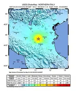 - "Magnitude 5.1 – NORTHERN ITALY". United States Geological Survey. Archived from the original on 23 May 2012. Retrieved 20 May 2012.