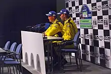 ![]() Mikko Hirvonen joking with his co-driver Jarmo Lehtinen before the start of the rally. | |||