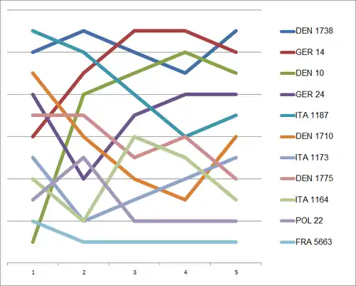 - Vintage Yachting Games Organization. "Results 2012 Vintage Yachting Games: Europe Male". Vintage Yachting Games Organization. Retrieved 2012-07-29.