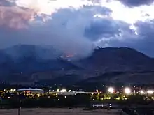 The 2012 Washington wildfires were a series of 1,342 wildfires that burned 259,526 acres (1,050 km2) over the course of 2012.[1] The fires primarily occurred in the Okanogan and Wenatchee National Forests during September and October 2012. A severe lightning storm on September 8 caused hundreds of fires across the east side of Cascade Range. Smoke caused hazardous air quality conditions in the cities of Ellensburg and Wenatchee,[2] and was noticeable in Seattle. The cost of fighting the largest four fires was estimated to be $67.5 million.[3]