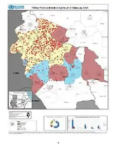 In late 2012, a yellow fever outbreak occurred in the Darfur region of Sudan that was the largest yellow fever epidemic to strike Africa in two decades.[1] On 10 January 2013, the Sudan Federal Ministry of Health and the World Heath Organization (WHO) reported that there had been 847 suspected cases since 2 September 2012, including 171 deaths, for an estimated case fatality rate of 20%. A mass vaccination campaign was launched in mid-November.[2] By early January, the five states of Darfur were free of any new cases.