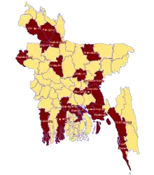 ![]() Bangladesh districts affected by 2013 anti-Hindu violence | |