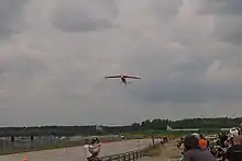 The Roadrunner's Paradise Race 61[3] festival was taking place at the Luftfahrtmuseum Finowfurt[4] (Finowfurt Aviation Museum), next to Eberswalde Finow Airfield.[5][6] The pilot involved made an unauthorized demonstration flight.[2][7]