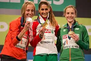 The medalists (left to right): Corinna Harrer, Sara Moreira, Fionnuala Britton.