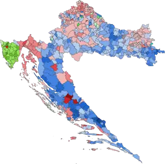 Results of the election based on the majority of votes in each municipality of Croatia