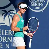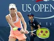 Ivanovic was one of the wildcard recipients. Ivanovic reached the semifinals of the Mutua Madrid Open a Premier Mandatory event, losing to Maria Sharapova 4–6, 3–6.[13] She also reached the semifinals of the Southern California Open losing to Victoria Azarenka 0–6, 6–4, 3–6.[14] She reached her first final of the year at the Generali Ladies Linz losing to German Angelique Kerber 4–6, 6–7(6–8). At the slams, Ivanovic reached the fourth round of the Australian Open and French Open, losing to Agnieszka Radwańska 2–6, 4–6 on both occasions.[15] Ivanovic lost to Eugenie Bouchard in the second round of Wimbledon 3–6, 3–6.[16] At the final slam of the year, at the US Open, she lost in the fourth round to Victoria Azarenka 6–4, 3–6, 4–6.[17] She is making her third appearance to the event, having won the event twice.