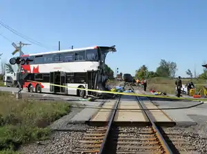 The Ottawa bus-train crash was a collision that occurred between an OC Transpo double-decker bus and a Via Rail train in the Ottawa suburb of Barrhaven on 18 September 2013, that killed six people.[1][3]