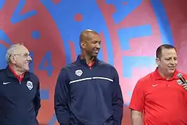 It was announced on July 22 that Jimmy Butler and McDermott would play on the 2014 U.S. Select Team.[25] The Bulls' team captain Derrick Rose participated in the 2014 FIBA Basketball World Cup representing the United States men's national basketball team; head coach Tom Thibodeau was also part of the team as an assistant coach.[26][27]