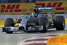 The 2014 Singapore Grand Prix was the 14th of the 19 rounds in the 2014 Formula One World Championship, and the seventh Formula One Singapore race. It was held on 21 September at the 23-turn 5.065 km (3.147 mi) Marina Bay Street Circuit in Marina Bay.[4] The official name was the 2014 Formula 1 Singapore Airlines Singapore Grand Prix,[5] and was scheduled to run for 61 laps.[4] Tyre supplier Pirelli brought the red-banded super-soft "options" and yellow-marked soft "primes" dry tyre compounds to the race.[2]