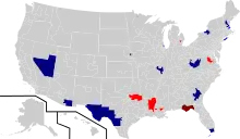 The 2014 United States House of Representatives elections were held on November 4, 2014, in the middle of President Barack Obama's second term in office. Elections were held for all 435 seats of the House of Representatives, representing the 50 states. Elections were also held for the non-voting delegates from the District of Columbia and four of the five territories. The winners of these elections served in the 114th United States Congress, with seats apportioned among the states based on the 2010 United States Census. The Republicans won 16 seats from Democrats, while three Republican-held seats turned Democratic. The Republicans achieved their largest majority in the House since 1928 due to a sizeable Republican wave. Combined with the Republican gains made in 2010, the total number of Democratic-held House seats lost under Barack Obama's presidency in midterm elections rose to 77 with these elections. This marked the highest number of House seats lost under a two-term president of the same party since Harry S. Truman.[2] With 36.4% of eligible voters voting, the voter turnout was the lowest since 1942.[3]