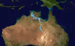 Tropical Low 05U developed over land near Borroloola in the Northern Territory during 21 December.[14][15] Over the next couple of days, the system gradually deepened further as it moved west-northwest inland and passed near Daly Waters and Katherine. The system subsequently approached Darwin during 24 December, where it was causing near gale-force winds offshore. On 26 December, 05U was embedded within a monsoon, giving a potential of intensifying into a tropical cyclone.[16] A couple of days later, 05U drifted southeastwards towards land and failed to reach tropical cyclone intensity.[17] The system was last noted on 2 January while it was located over the Simpson Desert in Queensland, as it was not clear if the low continued towards the east coast or another system had developed.[14]