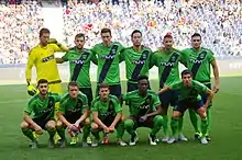 Southampton began their pre-season preparations in Austria with a friendly against German side RB Leipzig on 8 July 2015, which they lost 5–4.[40] New signings Juanmi and Cédric Soares scored their first goals for the club, while Jay Rodriguez returned from a long-term injury to strike twice in the game.[40] Three days later, the club competed in the Audi Quattro Cup semi-final against Spanish club Valencia, losing 1–0 thanks to a goal scored by Pablo Piatti.[41] Both Sadio Mané and José Fonte hit the crossbar during the game, but Valencia advanced to the final.[41] In the third-place playoff match against hosts Red Bull Salzburg, the Saints lost 2–0, thus finishing fourth in the tournament.[42]