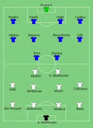 Tunisia opened the scoring in the 70th minute, as Ali Maâloul's cross was converted by Mohamed Ali Manser at the far post. Cape Verde equalized eight minutes later through Héldon's penalty after he was brought down by Syam Ben Youssef at the edge of the penalty area.[5][6]