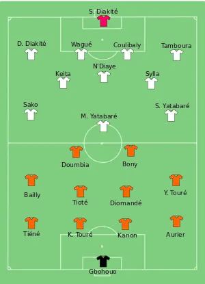 Mali took the lead in the 7th minute, as Bakary Sako scored home from Sambou Yatabaré's cross. Ivory Coast equalized in the 86th minute, when Serge Aurier passed to Max Gradel to score.[11][12]