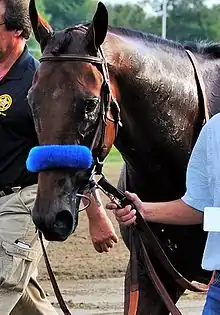 Beholder (#10) was second choice on the morning line at 3-1, having won six straight races including an impressive win against males in the Pacific Classic.[5] As Beholder had a similar running style to American Pharoah, she had been expected to press the pace. However, Beholder developed an illness a few days before the Classic and had to be scratched.[6]