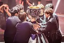 The 2015 League of Legends World Championship was the world championship held from October 1–31, 2015 for the multiplayer online battle arena (MOBA) video game League of Legends. It was the fifth iteration of the League of Legends World Championship. The different stages of the event were held in various cities across Europe: the group stages in Le Dock Pullman, in Paris, France; the quarterfinals at the Wembley Arena in London, England, United Kingdom; the semifinals in the Brussels Expo in Brussels, Belgium; and the finals at Mercedes-Benz Arena in Berlin, Germany. The 16 teams qualified by either winning a professional league or a regional qualifying tournament.[3] There was a 16 team round-robin group stage followed by an 8 team single elimination bracket. The games were officially streamed on Twitch, YouTube and Azubu in several languages. The BBC also streamed the tournament online on BBC Three but for United Kingdom IP addresses only. A peak of around 14 million concurrent viewers watched the finals, according to official sources.