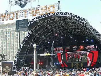 The 2015 NFL Draft was the 80th annual meeting of National Football League (NFL) franchises to select newly eligible football players. It took place in Chicago at the Auditorium Theatre and in Grant Park, from April 30 to May 2.[1][2] The previous fifty NFL drafts (since 1965) had been held in New York City.[3] The 2015 NFL draft was the first to feature an outdoor component, where fans would be able to see the Commissioner on the Auditorium Theatre stage from across the street in the park; this area was called Draft Town.[4] The Tampa Bay Buccaneers held the right to select first because they had the league's worst record in the previous season. The Arizona Cardinals made the final pick in the draft, commonly called Mr. Irrelevant.