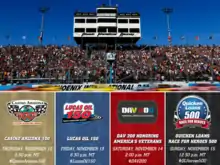 | Lead announcer: Jeff Striegle[44] Announcer: Alex Hayden[45] Announcer: Rusty Wallace[46] | Turns 1 & 2: Dan Hubbard Turns 3 & 4: Kyle Rickey | Winston Kelley Pete Pistone Steve Post |