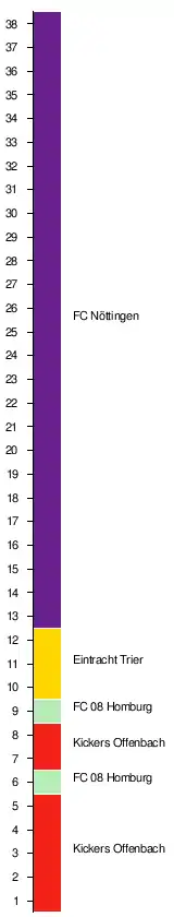 | FC 08 Homburg | 0:1 | 1:2 | 2:3 | 0:2 | 0:3 | 1:0 | 1:2 | 3:3 | 1:0 | 2:1 | 1:4 | 2:1 | 1:4 | 0:1 | 0:3 | 2:0 | 1:3 | 2:0 | |