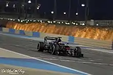 At the next race in Bahrain, Alonso was ruled out of taking part on medical grounds and was later revealed to have suffered broken ribs and a pneumothorax as a result of the previous race's collision, and was replaced by rookie Stoffel Vandoorne.[112] Following the widespread criticism of the new qualifying format, the teams voted to abandon it and revert to the system used in 2015.[113] However, in the week before the race weekend, the sport's Strategy Working Group over-ruled the teams in order to keep the elimination style for 2016.[106] After qualifying, the system once again came under heavy fire with Hamilton securing pole position ahead of Rosberg and Vettel.[114][115] The race saw Rosberg take his second consecutive victory of 2016 followed by Räikkönen and Hamilton, respectively.[116] The Ferrari of Sebastian Vettel and the Renault of Jolyon Palmer retired before the race started with engine and hydraulics failures, respectively.[117] Following a first-lap collision with Hamilton, Valtteri Bottas was penalised and given two points on his licence.[118]