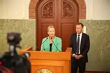 Media coverage characterised the announcement as a surprise since the national referendum on October 2 was narrowly defeated.[21][22] Initial reports also expressed surprise that the prize was not awarded jointly with FARC leader Rodrigo Londoño, Santos' main negotiating partner.[23] Londoño, under the name Timoleon Jimenez, tweeted his reaction to the announcement: "The only award we want is peace with social justice for Colombia without paramilitarism, without retaliation or lies."[24]