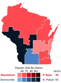 ![]() Popular vote by congressional district. As this is a first-past-the-post election, seat totals are not determined by total popular vote in the state, but instead by results in each congressional district. | |||||||||||||||||||||||||
