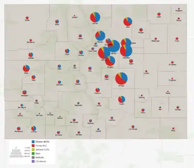 The 2016 United States presidential election in Colorado was held on Tuesday, November 8, 2016, as part of the 2016 United States presidential election in which all 50 states plus the District of Columbia participated. Colorado voters chose electors to represent them in the Electoral College via a popular vote, pitting the Republican Party's nominee, businessman Donald Trump, and running mate Indiana Governor Mike Pence against Democratic Party nominee, former Secretary of State Hillary Clinton, and her running mate Virginia Senator Tim Kaine. Colorado has nine electoral votes in the Electoral College.[2]