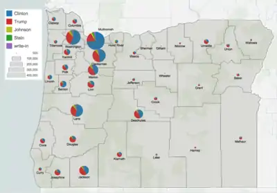 ![]() Oregon results by county Donald Trump (Note: Italicization indicates a withdrawn candidacy) | |||||||||||||||||||||||||