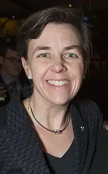 The caucus chose Rona Ambrose, MP for Sturgeon River—Parkland, Alberta and former Minister of Health, as interim leader at its first meeting on November 5, 2015, in a vote by preferential ballot.[18][19][20] Ambrose, as the interim leader, also served as Leader of the Official Opposition in the Parliament of Canada until a permanent leader was chosen. She defeated Candice Bergen, Diane Finley, Mike Lake, Rob Nicholson, Erin O'Toole, and the joint ticket of Denis Lebel and Michelle Rempel in the caucus vote.[21][22][23][20][24]