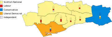 - †† On 15 May 2019, North East SNP Cllr. Gregor Murray resigned from the party, accusing the party of being institutionally transphobic. Cllr. Murray continues to serve the ward as an Independent.[9]