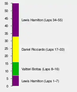 - ^1 – Fernando Alonso received three five-second penalties for leaving the track and gaining an advantage. Esteban Ocon received one five-second penalty for the same offence.