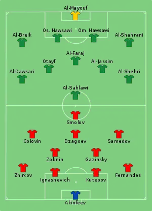 - "Tactical Line-up – Group A – Russia v Saudi Arabia" (PDF). FIFA.com. Fédération Internationale de Football Association. 14 June 2018. Retrieved 14 June 2018.